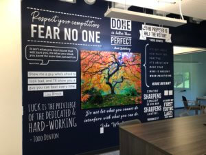 No matter the size or layout of your space, we can tailor our cut and printed graphics to suit your specific needs and preferences. Whether you’re looking to enhance the ambiance of your office interior or make a bold statement with exterior signage, our team works closely with you to develop customized solutions that align with your brand identity and marketing objectives. From concept to installation, we handle every aspect of the process with precision and attention to detail, ensuring a seamless and cohesive result that leaves a lasting impression on your audience.